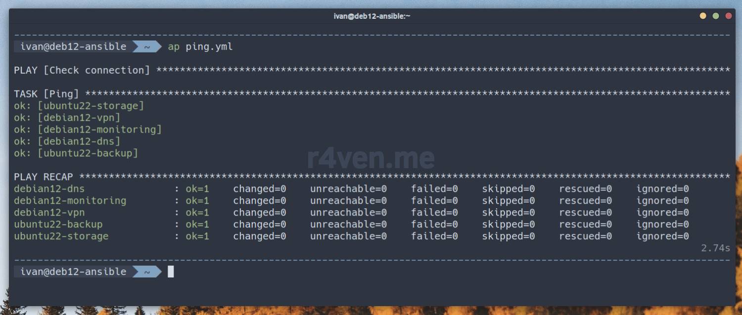 Если все отработало корректно, то порт доступа SSH на удаленных серверах будет изменен. Не забудьте скорректировать номер порта в файле инвентаризации. Или верните старый номер порта подобной командой: