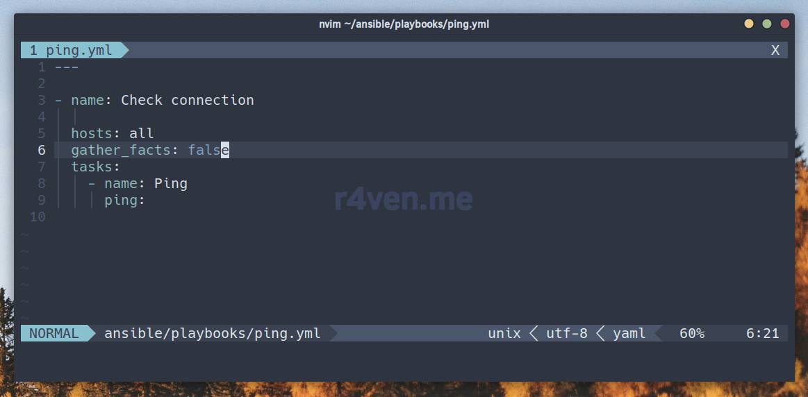 Такой конфигурации достаточно, чтобы начать использовать Ansible👍. Этот файл определяет поведение Ansible по умолчанию, которое может быть переопределено в других местах: файлах инвентаризации, плейбуках, файлах переменных, командах или в других конфигах.