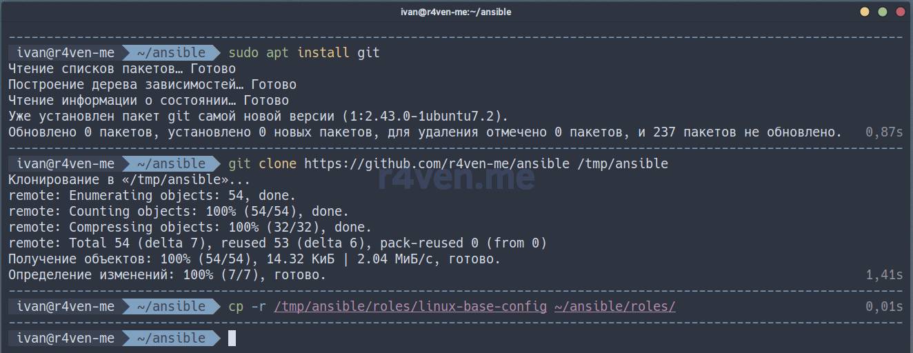 git clone https://github.com/r4ven-me/ansible /tmp/ansible