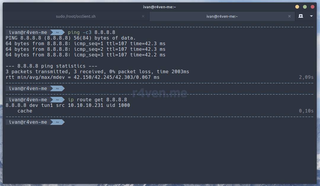 Вновь отмечу, что данный способ подключения предпочтителен на серверах без GUI. Потому что при использовании клиентов на десктопе, лучше заюзать плагин NetworkManager (если, конечно, за сеть у вас отвечает он). Процедура подключения такого клиента описана в соответствующем разделе статьи по настройке ocserv: 5.1 Настройка OpenConnect клиента для Linux.