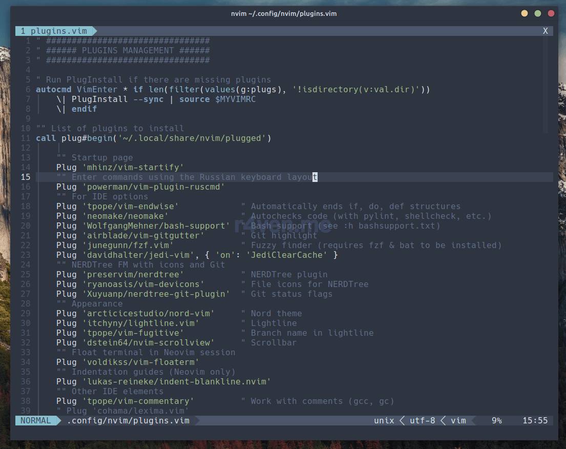 И так, ниже представлен список плагинов, которые я активно использую в своём Neovim:
