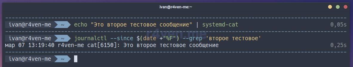echo "Это второе тестовое сообщение" | systemd-cat