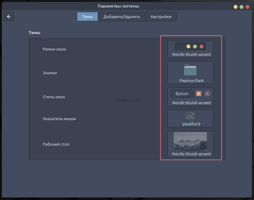 - Nordic-bluish-accent — тёмная gtk тема с цветовой палитрой Nord