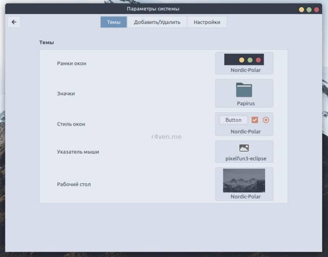 Отдельный нюанс совместимости иконок Papirus с темой Nordic: для корректного отображения монохромных иконок на панели и в других программах при использовании темы Nordic-bluish-accent выбирайте Papirus-Dark, а для Nordic-polar выбирайте просто Papirus.
