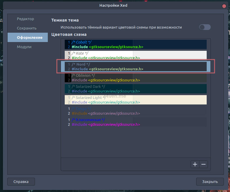 Активируем тему Nord для родного текстового редактора Linux Mint — Xed. Xed — это минималистичный, но довольно функциональный редактор текста с очевидными схожестями с Sumlime Text. Именно последний редактор кода очень любят разработчики Linux Mint и, вероятно, вдохновлялись им при создании собственного. Итак, открываем наш Xed вписав в главном меню «текстовый редактор» и переходим в его параметры: