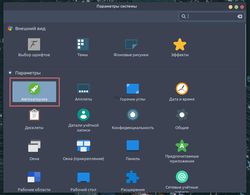 Данную панель, Аля MacOS мы установили вместе с иконками на 3-м шаге из стандартных репозиториев. Чтобы ее включить и активировать автозапуск идем в настройки системы, в раздел Автозагрузка. Нажимаем плюcик, затем Выбрать приложение и находим в списке Plank и кликаем по Добавить приложение. Теперь нажимаем на карандашик и выставляем время задержки в 5 сек. — это нужно для корректного запуска док-панели в случае резкого выхода-входа в сеанс.