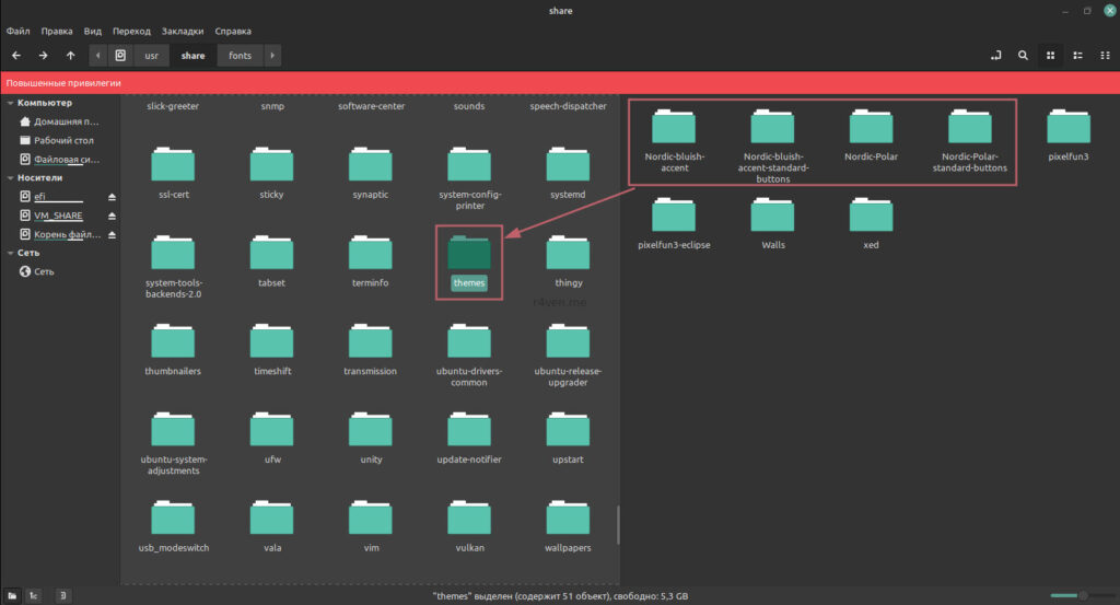 Для чего root? Мы будем копировать файлы внешнего вида в системную директорию, чтобы они были доступны на уровне системы, а не конкретного юзера. Их также можно разместить в домашней директории пользователя: ~/.themes ~/.icons ~/.local/share/fonts