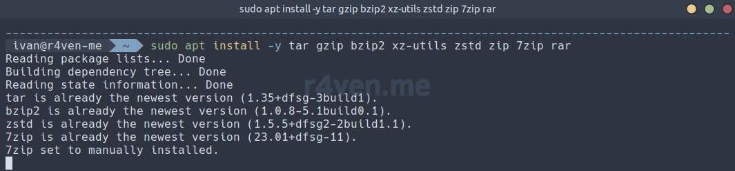 sudo apt install -y tar gzip bzip2 xz-utils zstd zip 7z rar