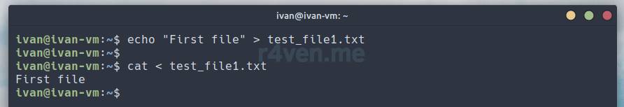 Второй командой мы указали команде cat взять данные для ввода из файла. Проще конечно было использовать просто cat test_file1.txt