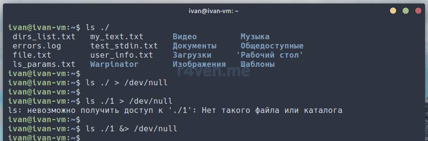 Бывают случаи, когда вывод работы какой-либо программы просто не нужен: ни на экране, ни в файле. В таком случае вывод можно перенаправить в специальное псевдоустройство, которое обычно есть в каждом дистрибутиве линукс — /dev/null