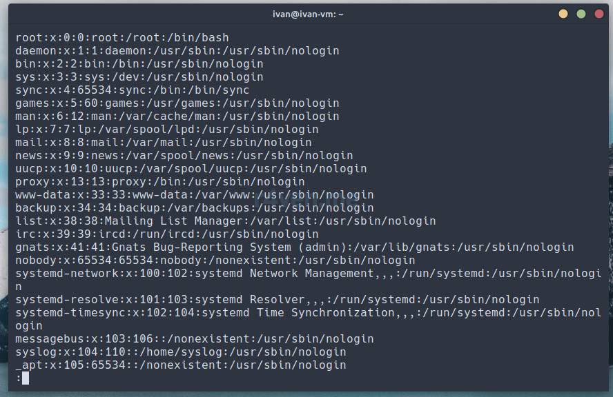 вывели содержимое файла с данными пользователей системы /etc/passwd, затем командой grep