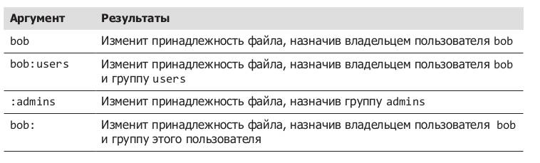 Ниже на изображении представлены некоторые примеры аргументов команды chown