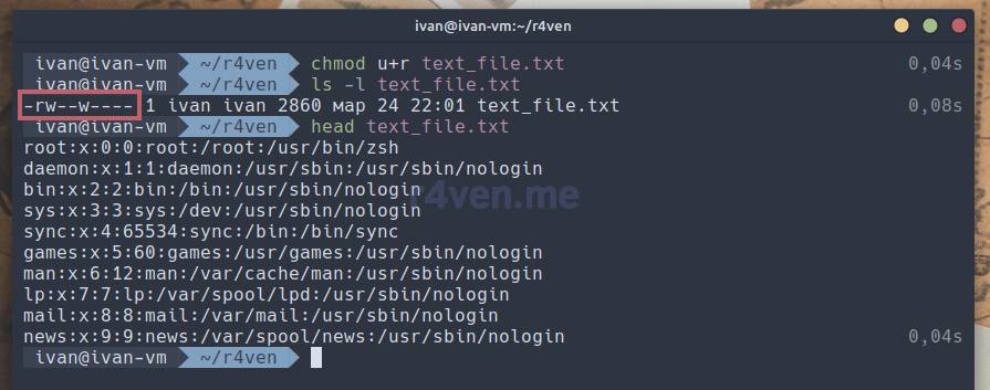 По умолчанию наши простые файлы имеют доступ на чтение для всех. Давайте уберем этот атрибут у файла text_file.txt