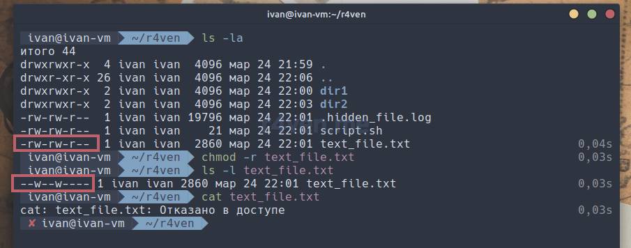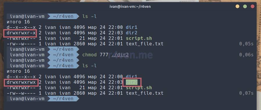Команда chmod — управление атрибутами чтение/запись/исполнение