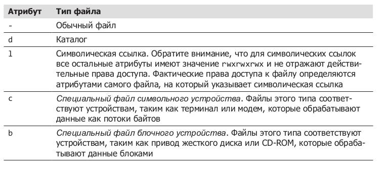 Первый символ указывает тип файла. На рисунке ниже приведены часто используемые на практике типы файлов: