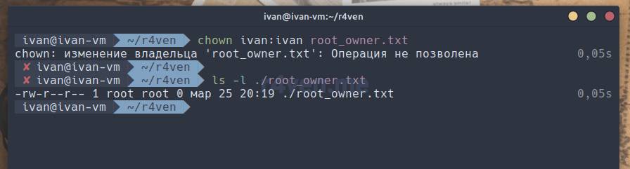 . При попытке изменить владельца НЕ от имени суперпользователя: