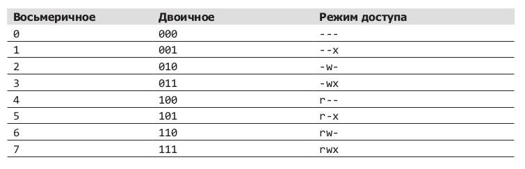 Ниже картинка из просторов, с распространенными примерами режимов доступа в восьмеричной системе для команды chmod