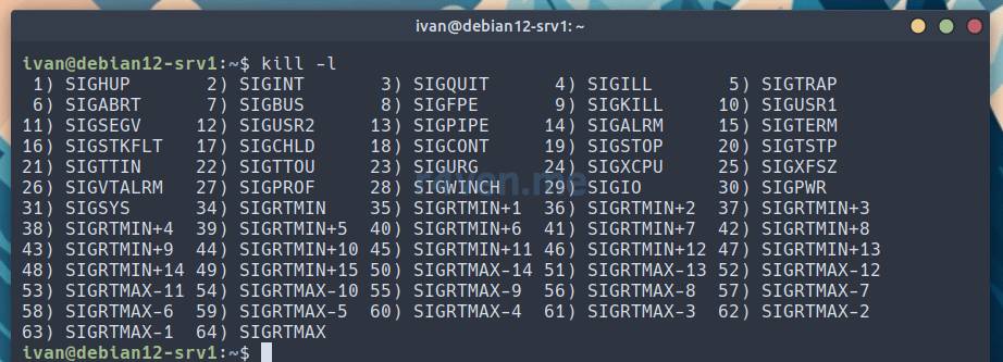 — вывести список доступных сигналов. Каждый сигнал имеет номер и имя.