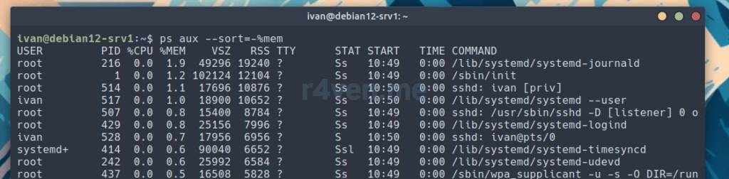 — сортировать процессы по использованию памяти (по убыванию).- Ключи в стиле BSD (без дефиса):