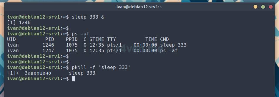 Теперь давайте отправим сигнал завершения SIGTERM (-15) с помощью команды pkill