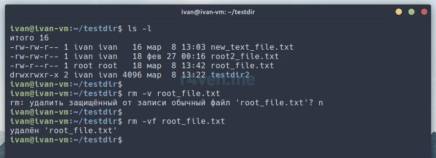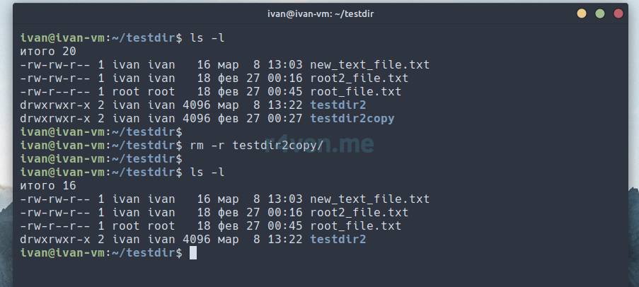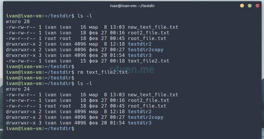 Команда rm (remove) — удаление файлов и каталогов