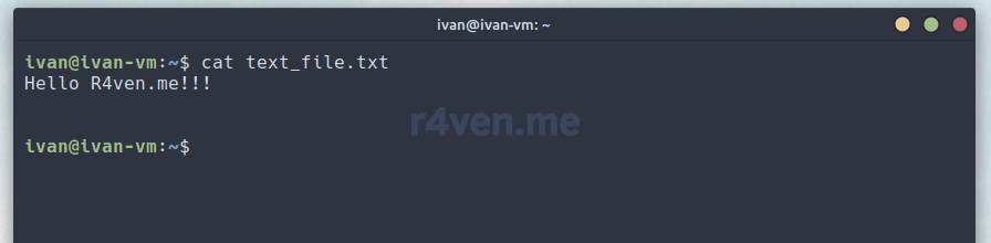 Теперь вернёмся в терминал и выведем содержимое только что созданного файла text_file.txt