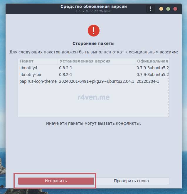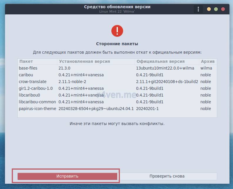 Следующим шагом будет удаление пакетов, которые отсутствуют в поддерживаемых Linux Mint 22 репозиториях: