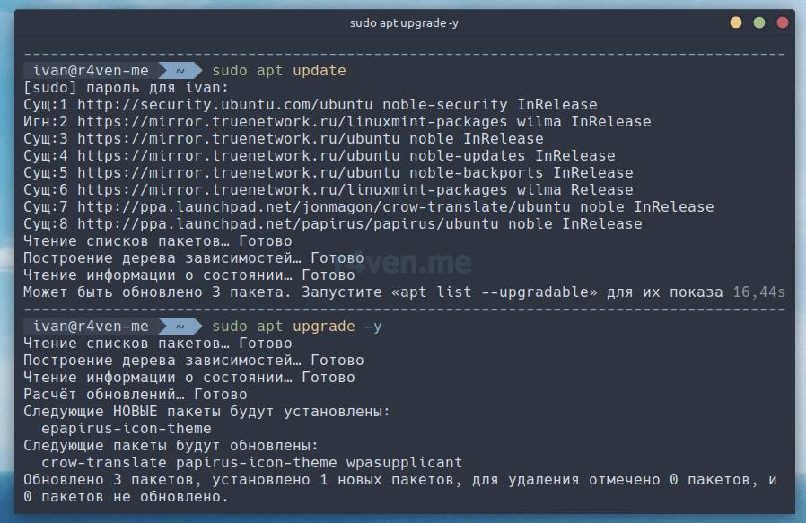 Теперь выполним установку специального графического инструмента (далее инструмент или утилита), который является пошаговым мастером. Он позволит нам с легкостью обновить нашу систему до Linux Mint 22.