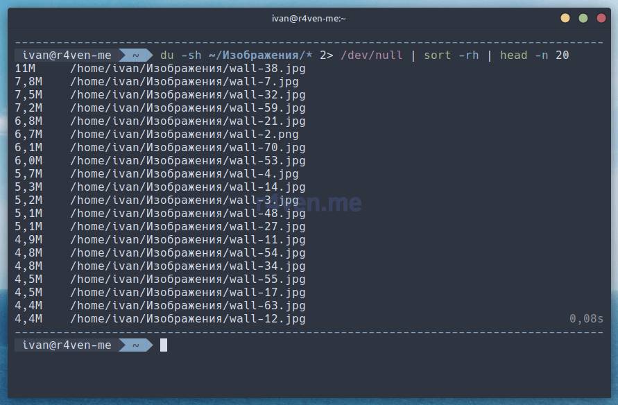 du -sh ~/Изображения/* 2> /dev/null | sort -rh | head -n 20