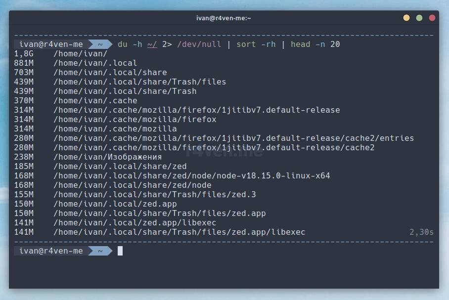 вывод обрезается до 20 первых строк. В итоге получаем пути до 20 самых «тяжелых» директорий.