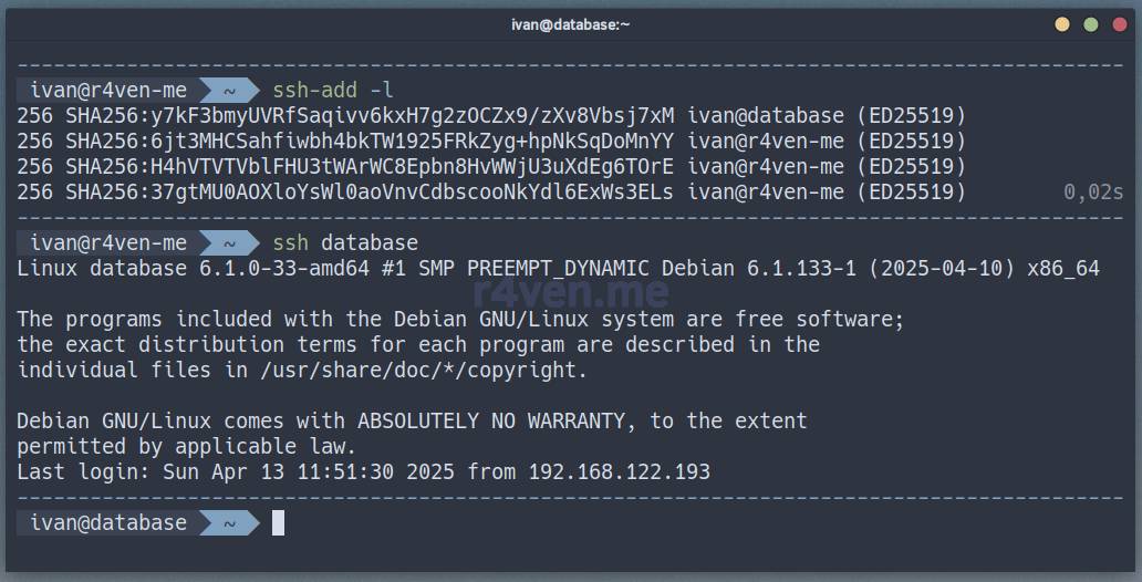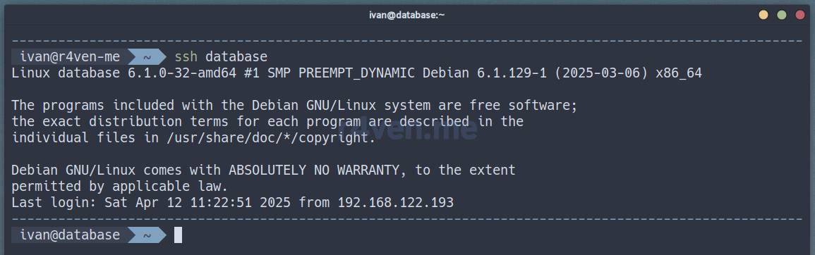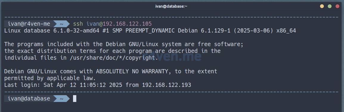 Рекомендуемым способом является использование SSH ключей 🔑. Давайте создадим такой и добавим его на сервер database: