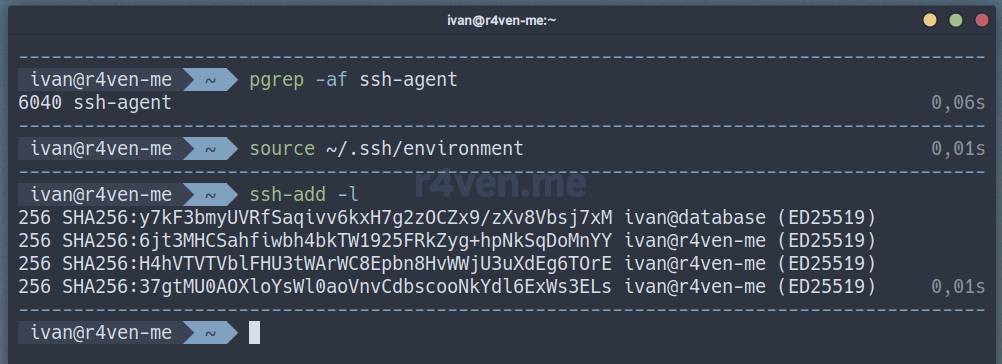 :- проверяет, работает ли текущий SSH-агент (по переменной