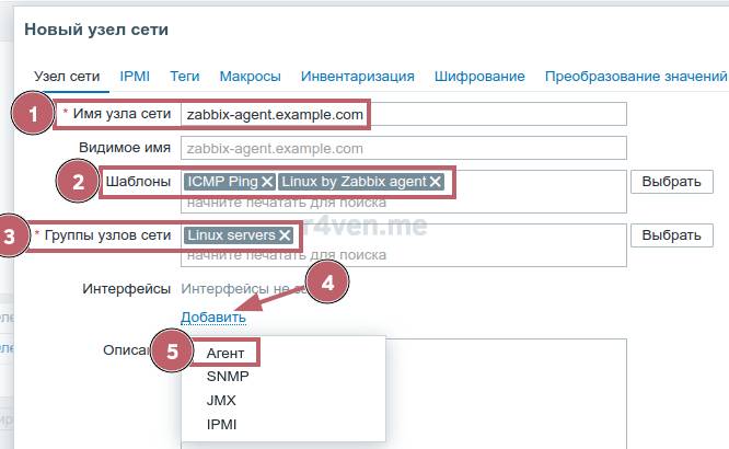 Тут обязательно задаем существующий IP адрес хоста, на котором сервис Zabbix agent будет ожидать подключений. Также указываем хостнейм агента и адрес Zabbix сервера.