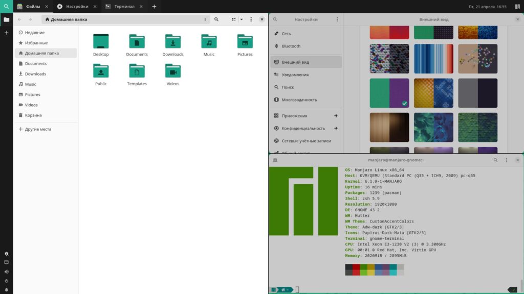 Сегодня покажу внешний вид дистрибутива Manjaro с рабочим столом Gnome.