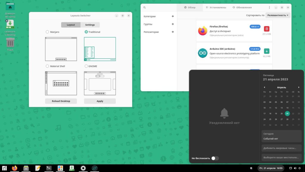 Утилита Layouts в дистрибутиве Manjaro Gnome позволяет быстро и легко переключаться между различными раскладками окон на рабочем столе.