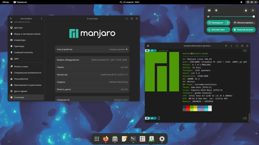 В целом, Manjaro Gnome — это отличный выбор для тех, кто хочет использовать Linux, но предпочитает более упрощенный интерфейс, а также желает получить доступ к множеству свежего и разнообразного ПО, которое хранится в репозиториях Manjaro.