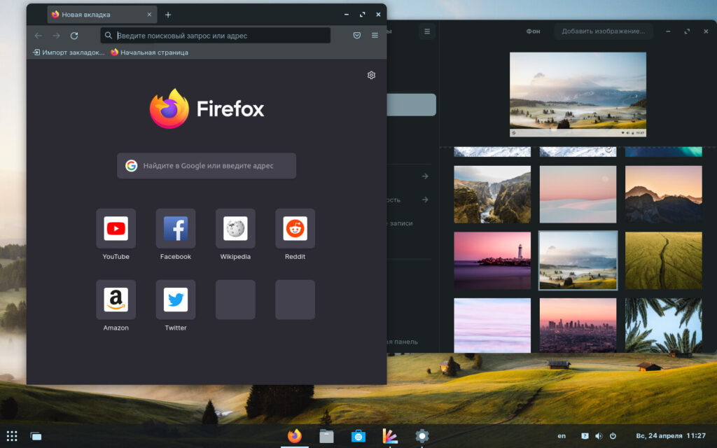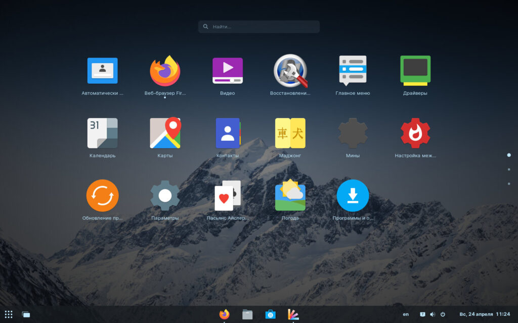 Одной из особенностей дистрибутива является набор шаблонов раскладок рабочего стола. Например: