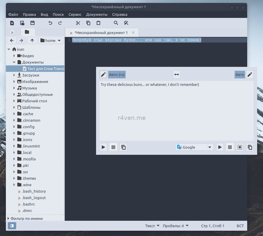 - Необходимо выделить любой текст, в любом месте, далее Crow Translate считывает первичный системный буфер обмена;