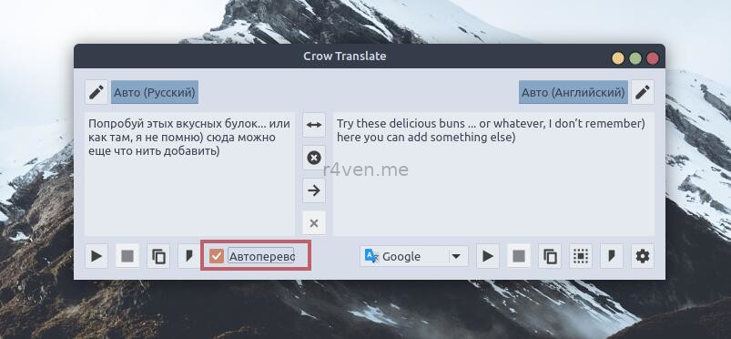 У Crow Translate есть также возможность вызова полноценного окна перевода. Для этого просто нажимаем Ctrl+Alt+C