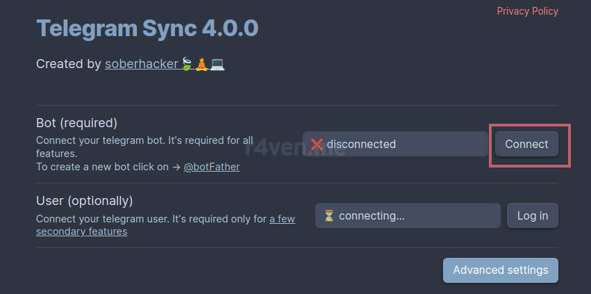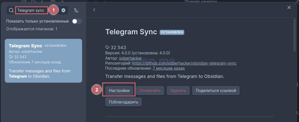 Также в настройках Telegram Sync я настраиваю ещё два параметра: