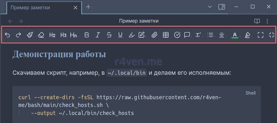 Теперь при редактировании заметки в верхней части окна появится панель инструментов для быстрого и удобного форматирования, как в текстовых процессорах: