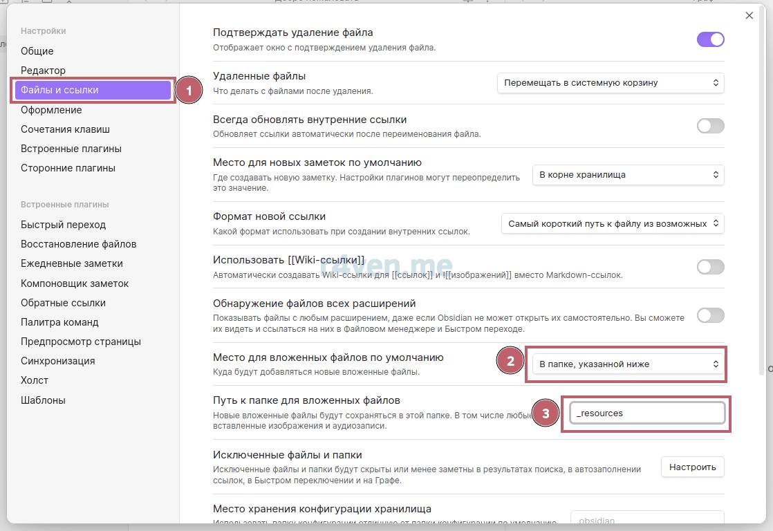 Далее я покажу свой вариант настройки и использования Obsidian. Начнём с директории для медиа файлов.