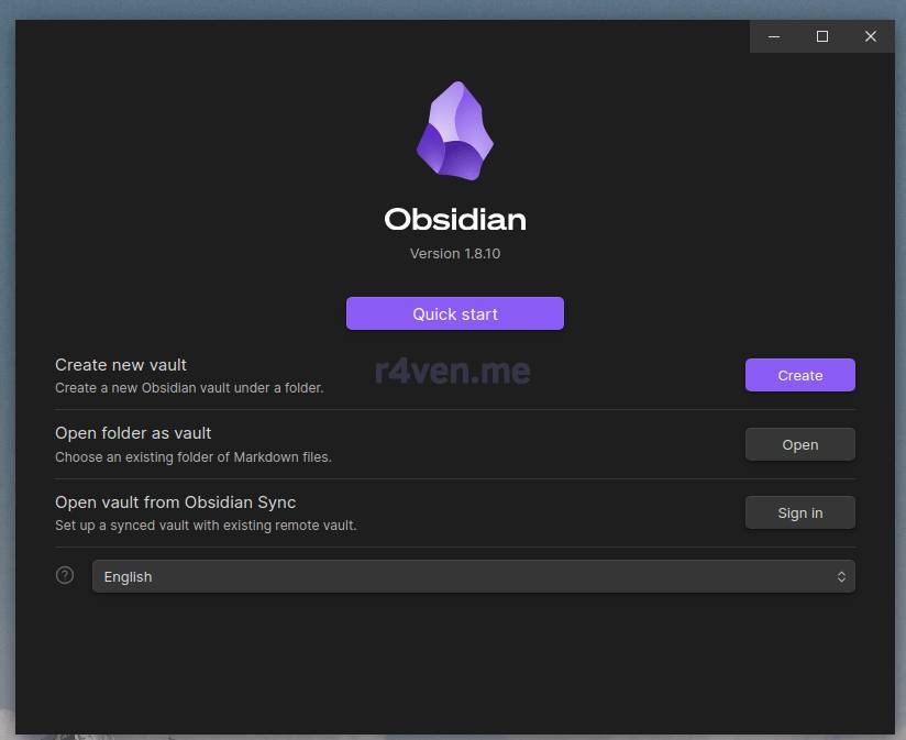 Quick Start — создать хранилище по пути ~/Документы/Obsidian Vault с примером заметок;
