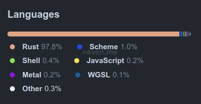 Как уже упоминалось, написан данный редактор, преимущественно на языке Rust.