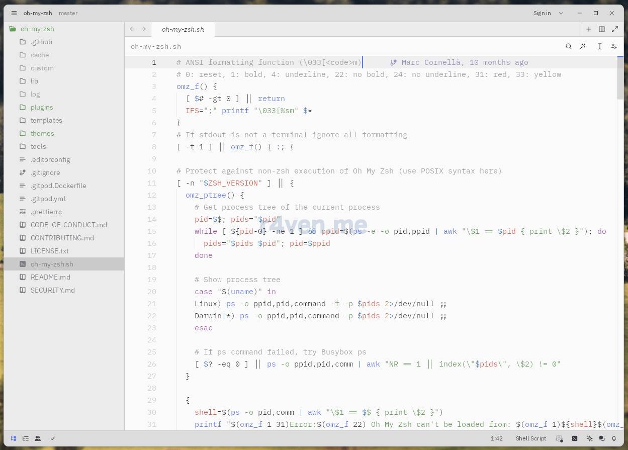 В целом, редактор работает шустро. Есть тема Nord, поддержка vim клавиш, линтер bash и даже интеграция с Copilot. Чаще всего, мне больше и не требуется) Не могу сказать, что я прям впечатлился, и полностью перейду на использование Zed. Он еще довольно сырой, у него не так много плагинов под различные нужды, но, с другой стороны, он позиционируется, как продукт «созданный разработчиками для разработчиков». Как в своё время было с редактором Vim (vim — форева).