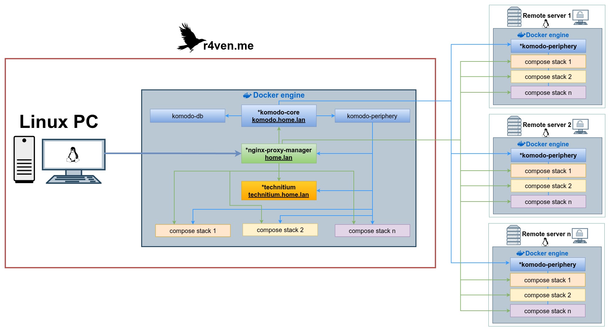 Я развернул такую лабораторию на своём домашнем Linux ПК и теперь с удобством управляю своими docker compose сервисами, работающие не только на нём, но и удалённых серверах. Но обо всём по порядку 📝.