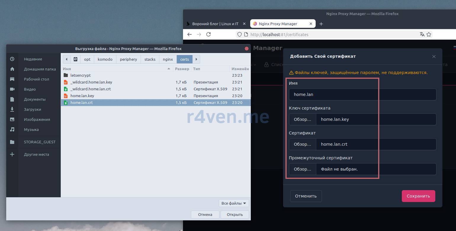 mkcert -cert-file ./_wildcard.home.lan.crt -key-file ./_wildcard.home.lan.key "*.home.lan"☝️ Нам важен именно такой путь: /opt/komodo/periphery/stacks/nginx/certs.