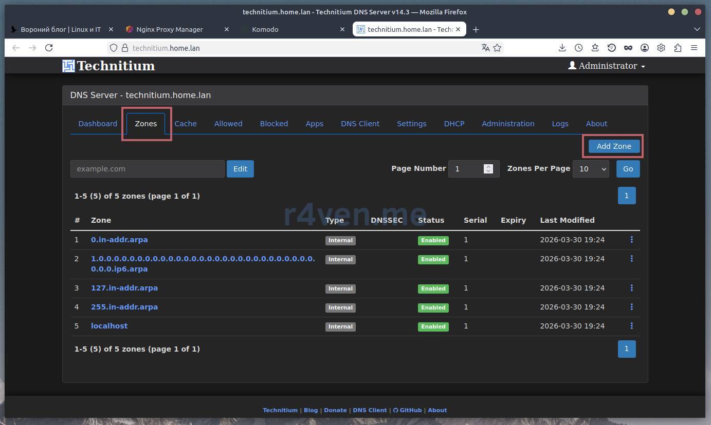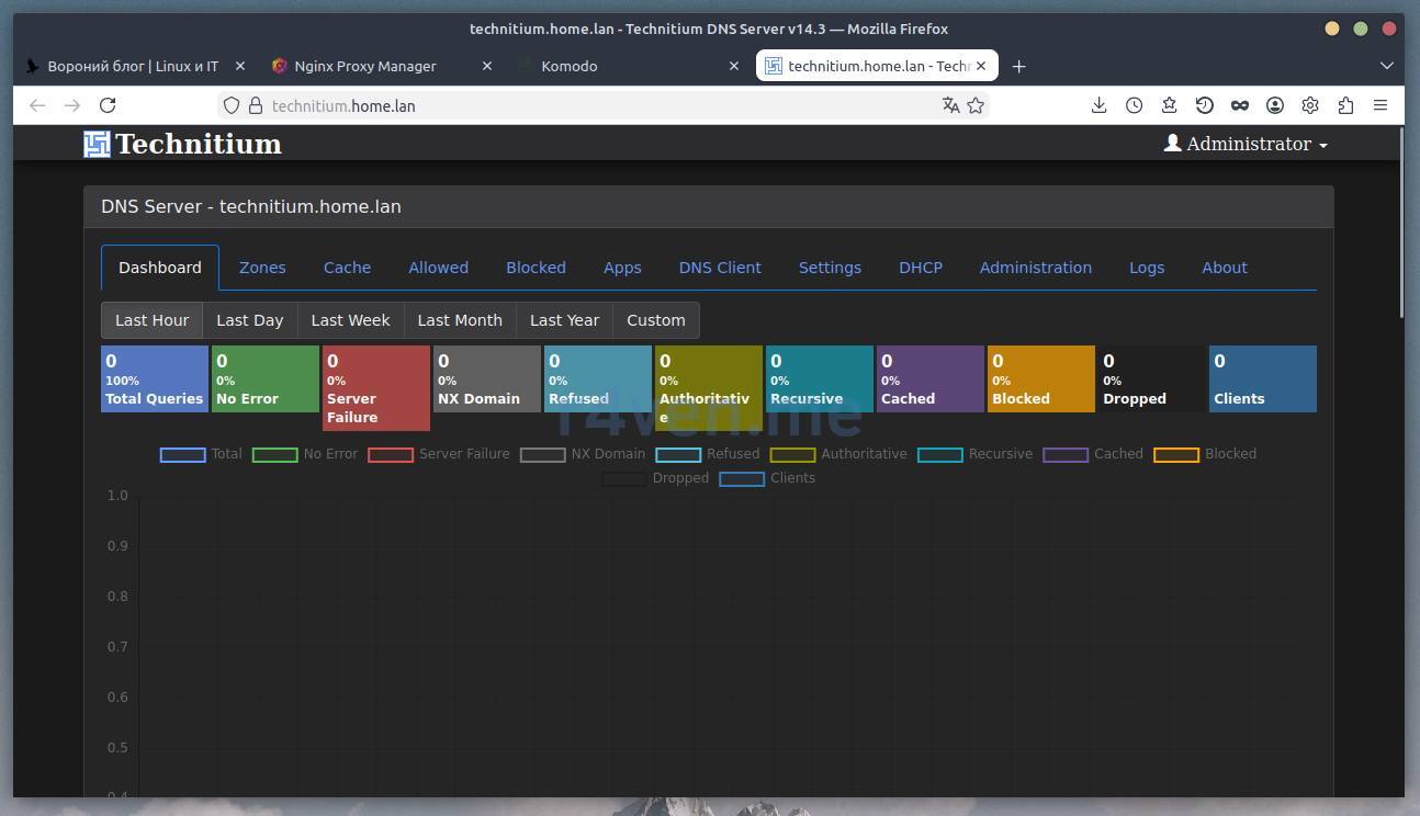 - Technitium - это функциональный DNS-сервер, также с веб-интерфейсом, позволяющий гибко управлять доменными зонами и разрешением имён, блокировать рекламу и прочее. Может реализовывать резолвинг по TCP, UDP, DoT, DoH и пр.