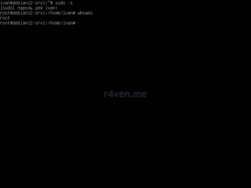 Команда показывает имя пользователя от имени которого был запущен сеанс оболочки. Теперь установим утилиту sudo и добавим нашего пользователя в одноименную группу: