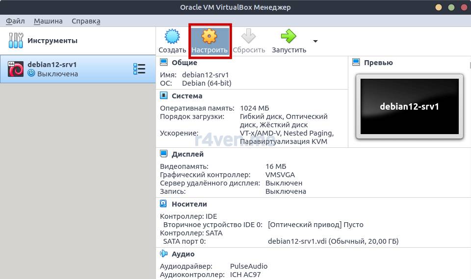 Сегодня мы установим сервер Debian GNU/Linux 12-й версии на виртуальную машину, созданную с помощью гипервизора VirtualBox.